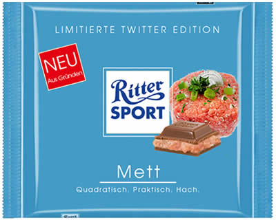 Bereits 2012 begann rund um die Marke ein Internetphänomen, das sich rasch verbreitete: Nutzerinnen und Nutzer entwarfen eigene, frei erfundene Schokoladensorten – visuell perfekt im typischen Look der Marke, inhaltlich jedoch völlig absurd. Von „Emmentaler“ über „Mett“ bis hin zu „Currywurst-Pommes“ oder „Pizza-Schoko“ reichte die Bandbreite. Je ungewöhnlicher die Kombination, desto besser funktionierte sie.