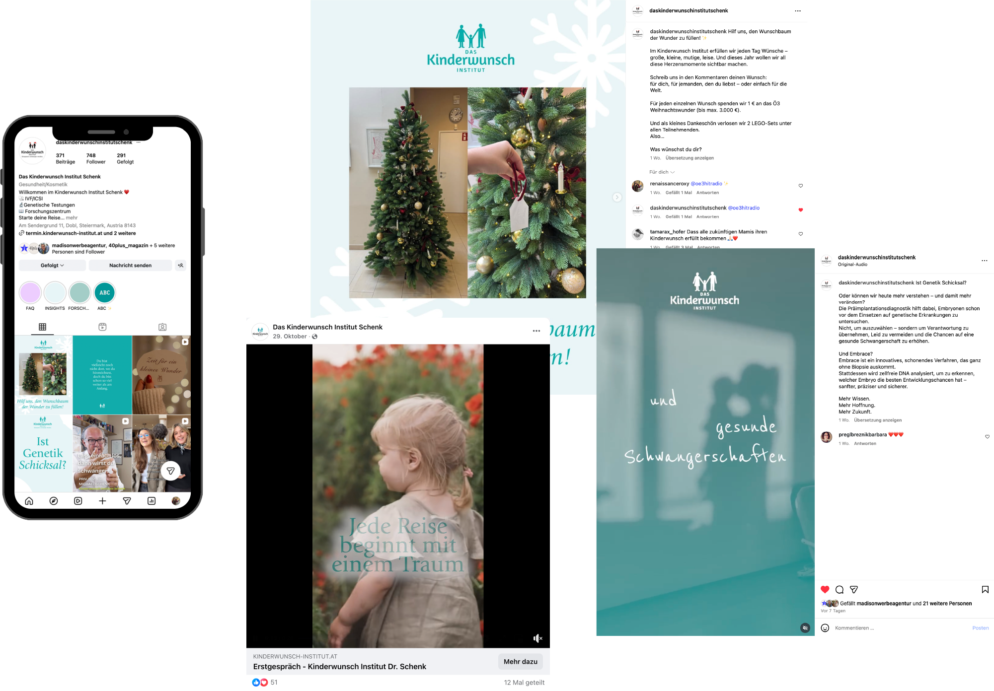 Das Kinderwunsch Institut betreibt ein aktives, informatives organisches Social Media, das von ihrem Team selbst betreut wird.
